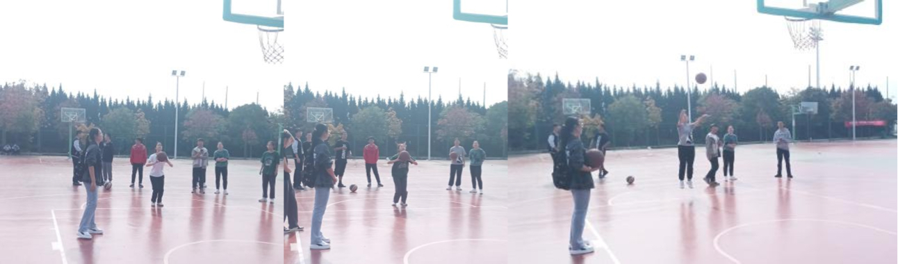 巾帼不让须眉,中场休息时篮球场上也没有空闲,女篮球员们纷纷上场。瞄准,发力!精准投篮,一展英姿。连中三球,赢得了现场观众的阵阵掌声和欢呼声,也为班级胜利争得更多可能。