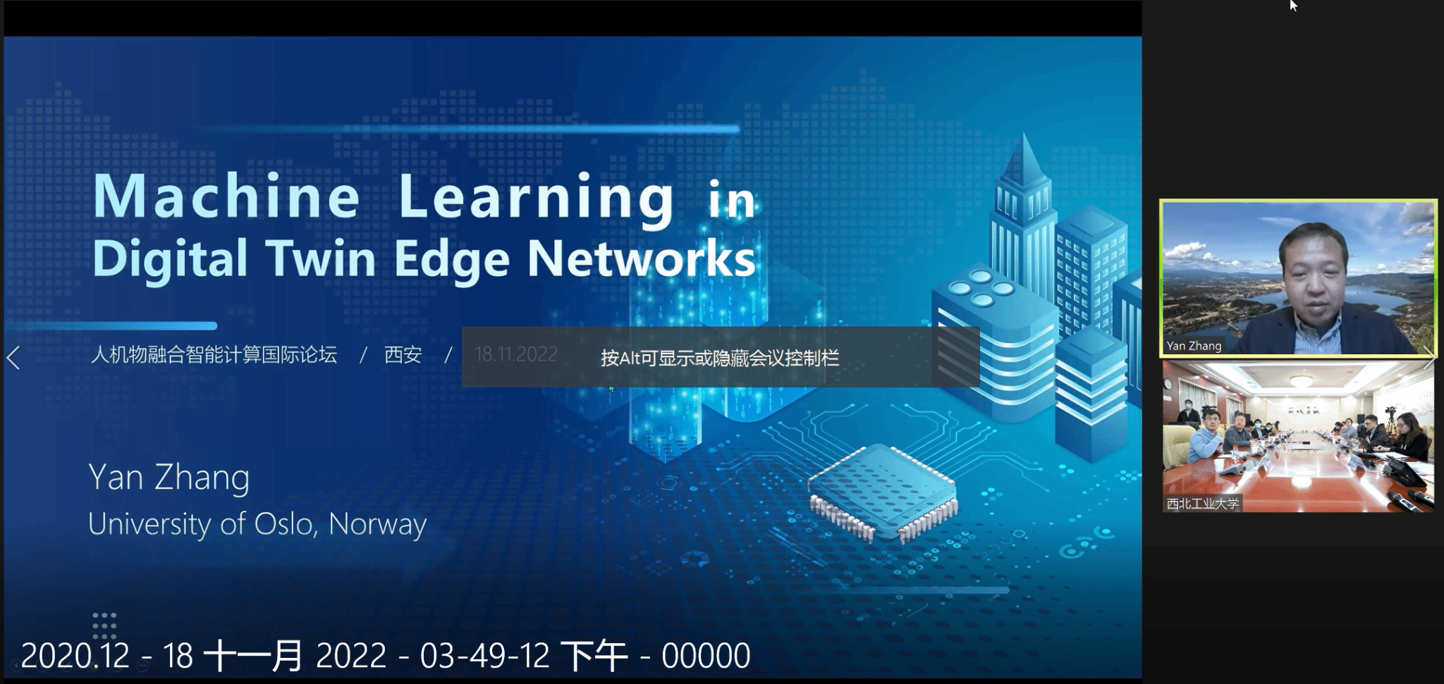 院士Yan Zhang教授发表了以《Machine Learning in Digital Twin Edge Networks》为主题的主旨报告。Zhang教授认为,数字孪生作为一种有效的信息表示技术,能够有力支持国家数字化发展战略,在产业界和学术界得到同步快速发展。他从多个角度对数字孪生技术进行了剖析,并从数字孪生边缘网络的实现出发,详细阐述了数字孪生边缘网络的构建与应用的相关问题,开拓了师生的研究视野。报告结束后,与会师生踊跃发言,积极提问。Zhang教授与师生进行了热烈讨论,就数字孪生、区块链等方面的提问作出详细解答,介绍了相关研究焦点问题的最新风向。