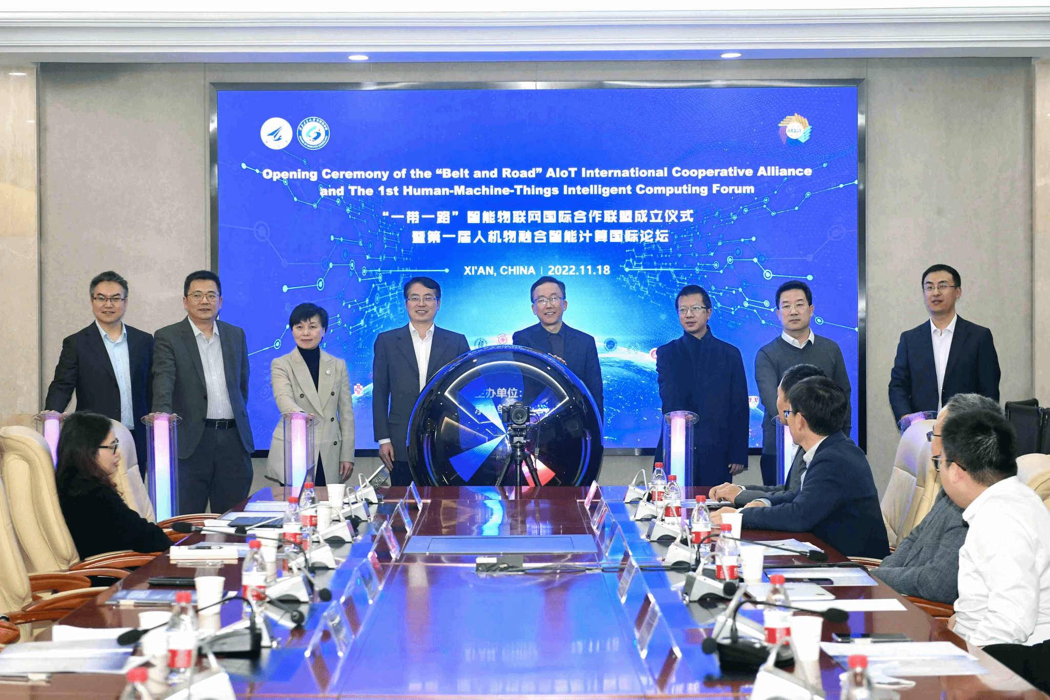 随后,与会嘉宾上台参与联盟启动仪式,并由张卫红校长宣布“一带一路”智能物联网国际合作联盟正式成立。