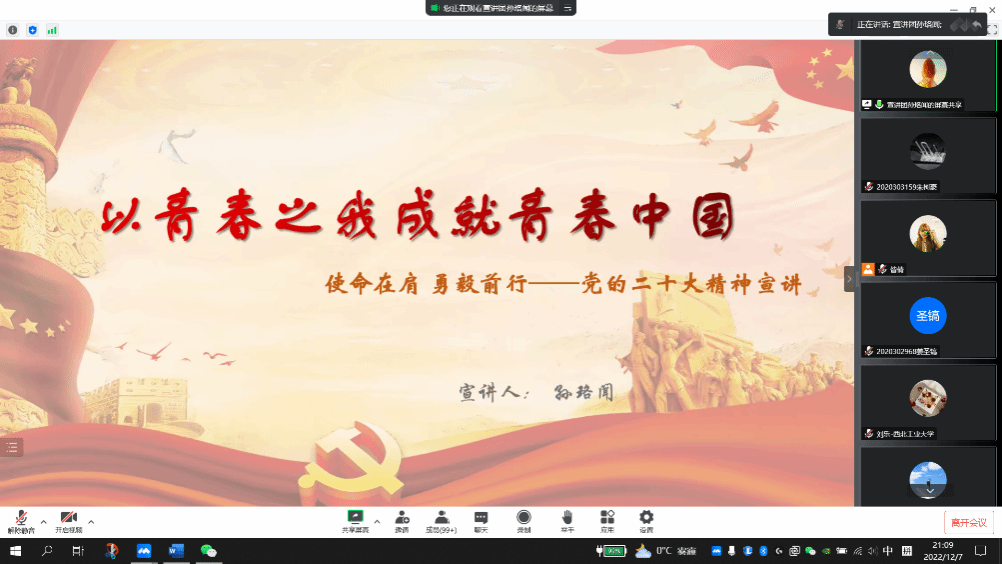 青春心向党,百年新征程。为进一步深入宣传贯彻党的二十大精神,不断增强青年团员们的凝聚力和向心力,以奋斗之我践行“请党放心,强国有我”的青春宣言。12月7日晚,日本av无码