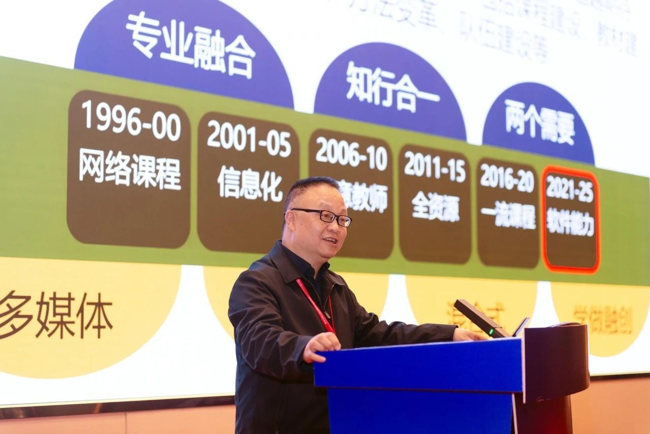 祝亚辉作题为“基于教材构建的一体化教学解决方案”的大会报告
