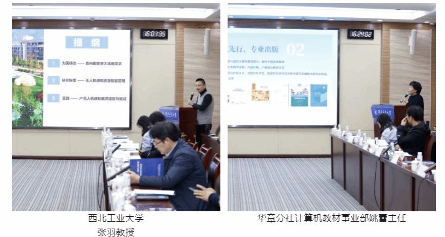智能计算系统系主任张羽教授,机械工业出版社华章分社、计算机教材事业部姚蕾主任,西安翔腾微电子科技有限公司、人工智能事业部负责人马城城主任就智能系统总师型人才培养、系列教材规划、科教协同育人、自主可控实践体系建设等进行了引导报告。