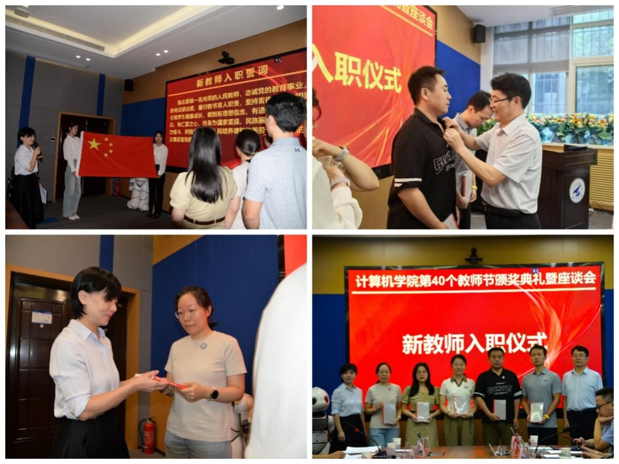 大家庭的每位教师佩戴院徽,并为每人送上《科技强国——35位科学家的信仰选择》一书。刘琰、韩淑捷、潘雨黛等新入职教师相继发言,表达了他们将坚守教育初心、勇担时代使命,为党和国家培养优秀人才的坚定决心。