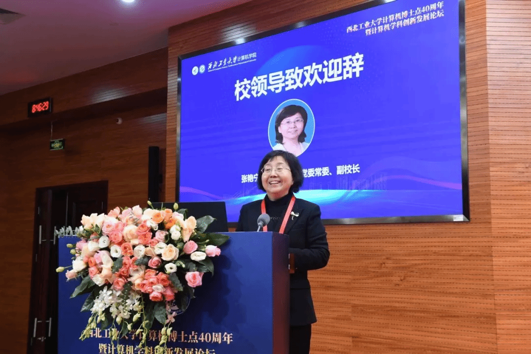 党委常委、副校长张艳宁致开幕词,她代表学校向与会嘉宾表达了欢迎与感谢,重点介绍了学校总师育人文化以及“127”近期目标和“天下工大、世界三航”远景目标等,希望与会嘉宾深入交流、碰撞火花,共同探讨西工大计算机学科的未来发展,加快推进计算机一流学科建设,为教育强国科技强国人才强国建设贡献西工大计算机力量。